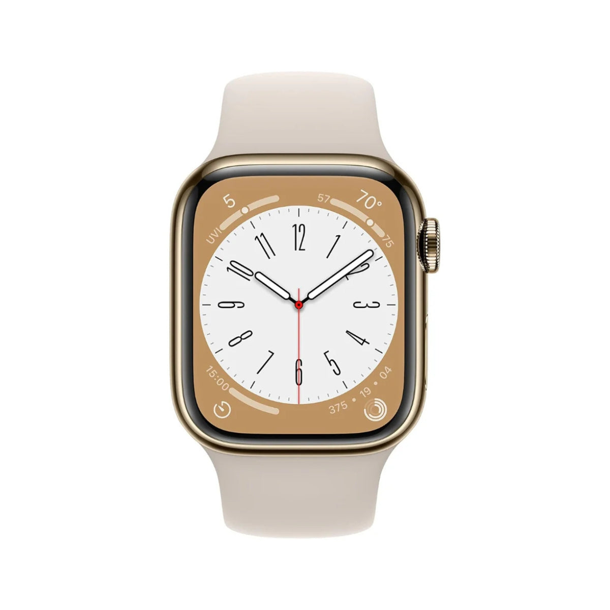 Cette Apple Watch Series 8, reconditionnée par des professionnels, est dotée d'un élégant boîtier en acier inoxydable doré de 41 mm et d'un bracelet sport blanc . Profitez de ses fonctionnalités avancées et de son esthétique intemporelle. Elle bénéficie du contrôle qualité Loop en 75 points .